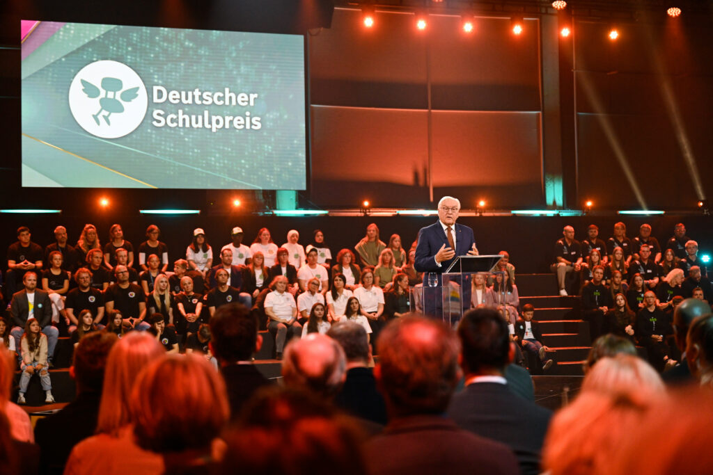 In feierlichem Rahmen hat unser Bundespräsident Frank-Walter Steinmeier höchstpersönlich die Preisverleihung vorgenommen. Im Livestream haben wir zeitgleich die Veranstaltung in Berlin am Thadden übertragen, sodass alle Klassen, Kurse und Mitarbeitenden die mit Spannung erwartete Entscheidung unmittelbar mitverfolgen konnten.