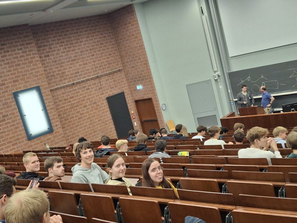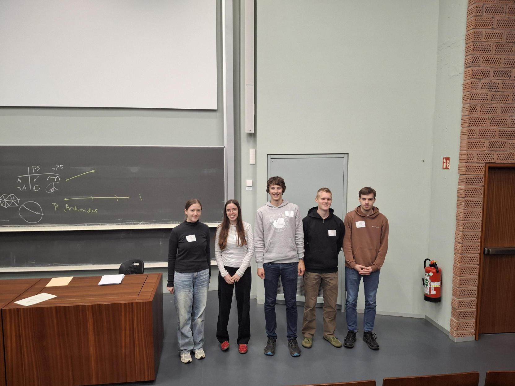 Am 9. Oktober 2025 nahm ein fünfköpfiges Team aus den Leistungskursen Mathematik der Kursstufen 1 und 2 erfolgreich am Tag der Mathematik an der Universität Heidelberg teil. Die Veranstaltung fand am COS (Centre for Organismal Studies) auf dem Campus im Neuenheimer Feld statt.