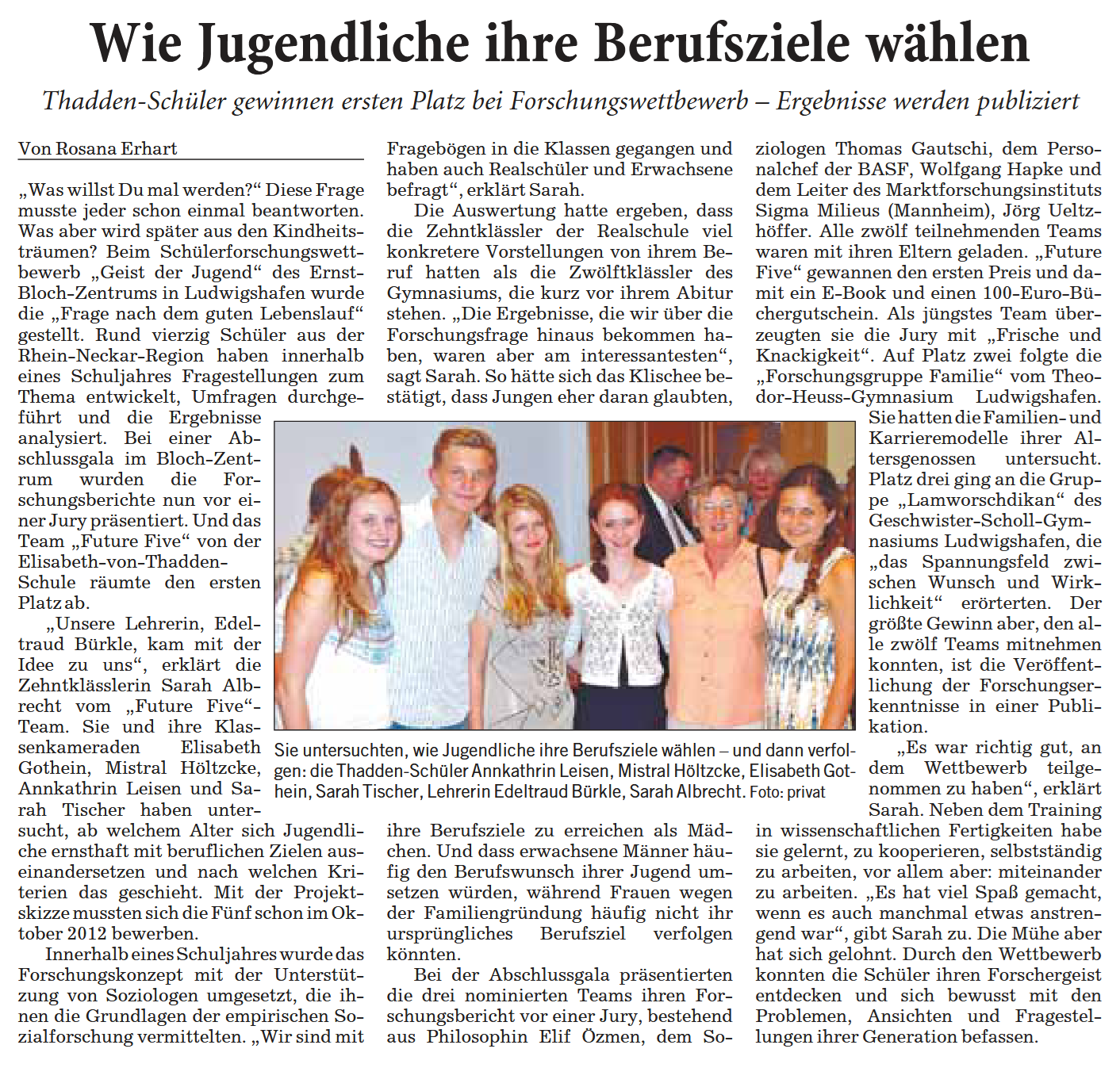 Thadden-Schüler gewinnen ersten Platz bei Forschungswettbewerb – Ergebnisse werden publiziert